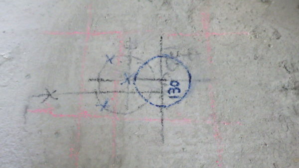 元の墨位置ではコアボーリングを行った場合鉄筋を切断するため、切断しない位置へ墨位置を変更しました。