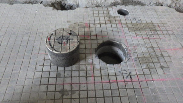 コアボーリング箇所付近にコア固定用のアンカーを打設します。