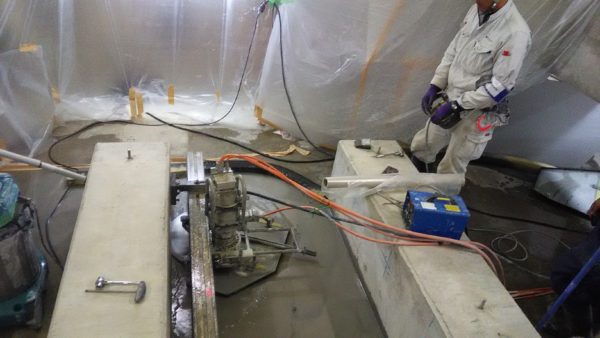 ウォールソー設置、周囲飛散養生