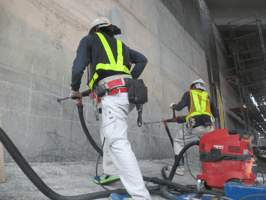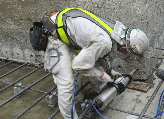 アンカー予定箇所を穿孔します。通常はハンマードリルで行いますが、穿孔長が長い場合などはコアで穿孔を行います